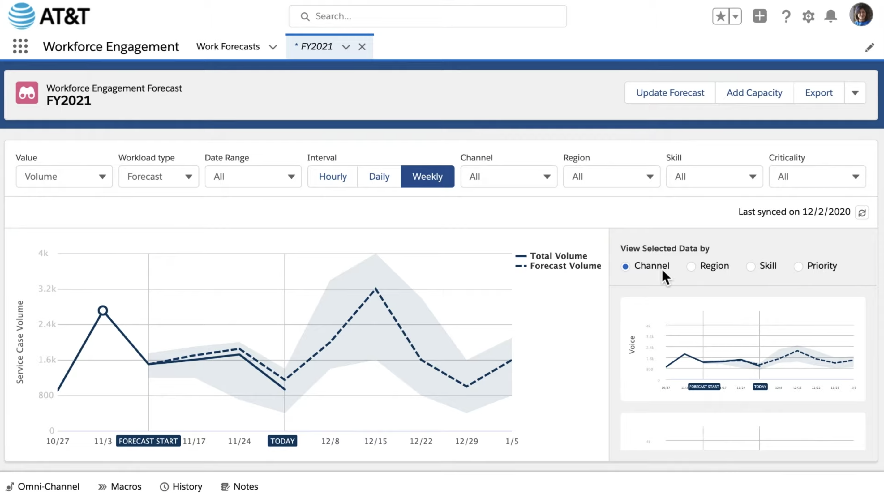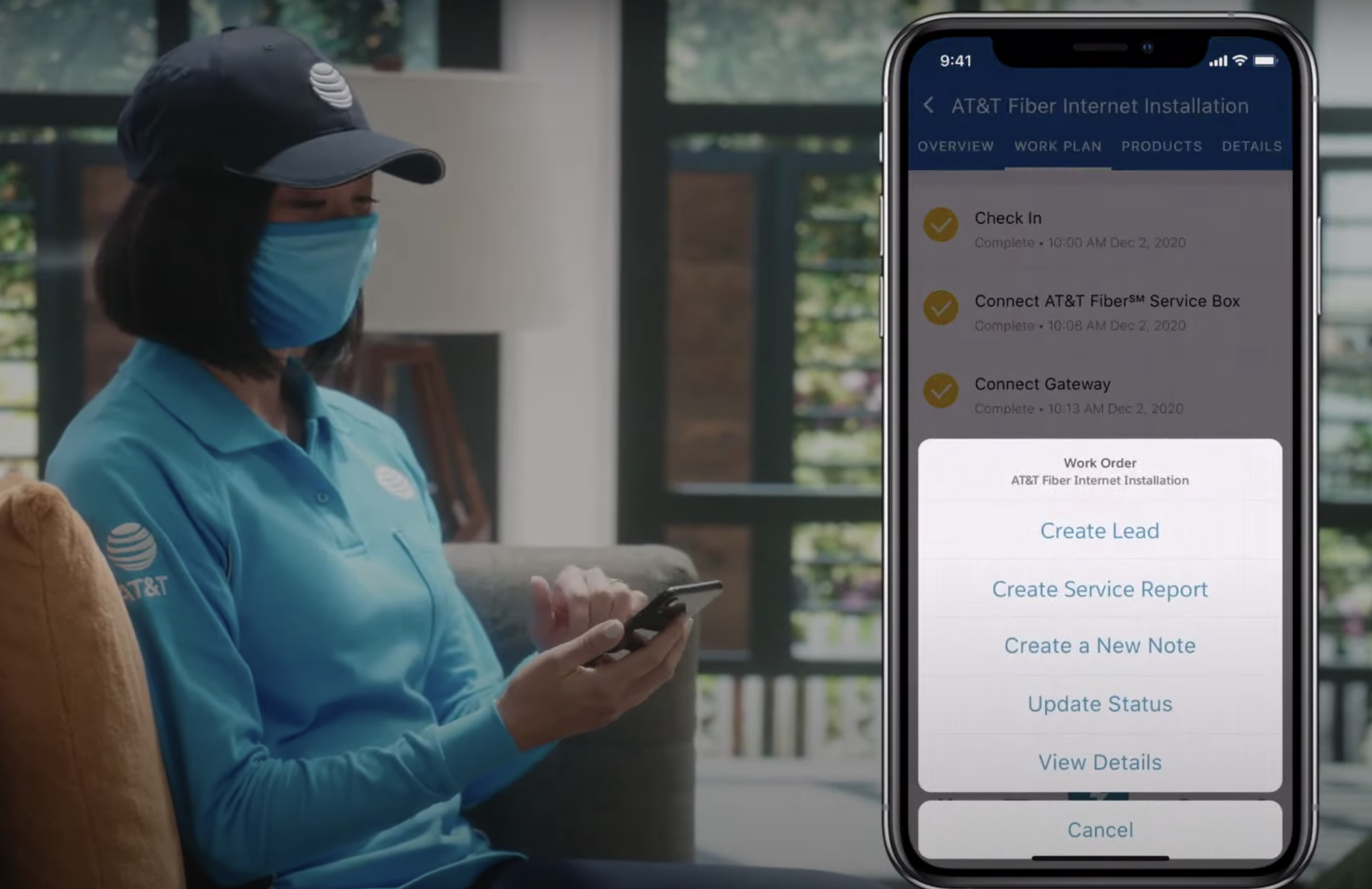 Salesforce Sevice Cloud 의 신기능 Salesforce Work Engagement 는 고객의 서비스 수요를 예측할 수 있도록 도와줍니다. 서비스 에이전트는 Customer 360 을 통해 AT&T의 영업사원들이 보는 것과 동일한 고객 데이터와 이력을 조회할 수 있습니다. 서비스 에이전트나 필드 엔지니어의 스킬 셋에 따라 해당 수요를 충족시킬 수 있는지도 미리 알아볼 수 있습니다. 필요한 서비스 수요가 발생할 때는 Salesforce Field Service 를 통해 현장 서비스 엔지니어를 파견합니다. Field Service Mobile 을 통해 서비스 엔지니어는 서비스 제공에 필요한 정보를 얻을 수 있을 뿐 아니라, Field Service Mobile 을 통해 고객이 원하는 수요를 발견할 경우 새로운 Lead 를 생성할 수 도 있습니다.