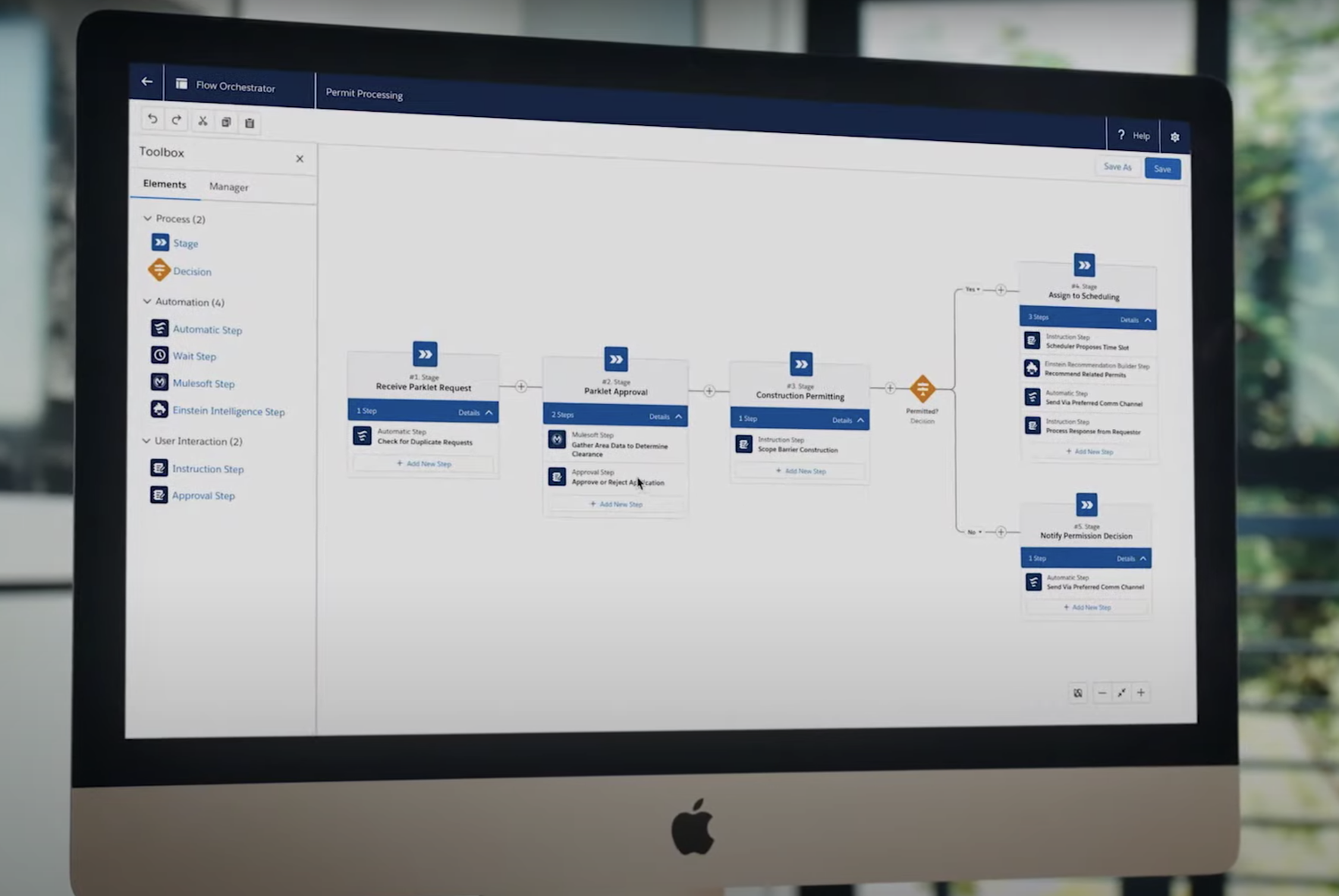 시스템 워크플로우를 좀 더 편한 방식으로 지원하기 위한 아인슈타인 오토메이트 (Einstein Automate) 를 발표하였습니다. 아인슈타인 (AI) 에서 제공하는 챗봇 기술 들, 각종 업무 환경 (팀즈, 슬랙 등) 과 이미 통합되어 사용이 가능합니다. 백엔드 시스템과의 연결을 위해서 Mulesoft 기능을 강화하였으며, 워크플로우를 코딩 없이 구현하기 위한 Flow Orchstrator 를 지원합니다.